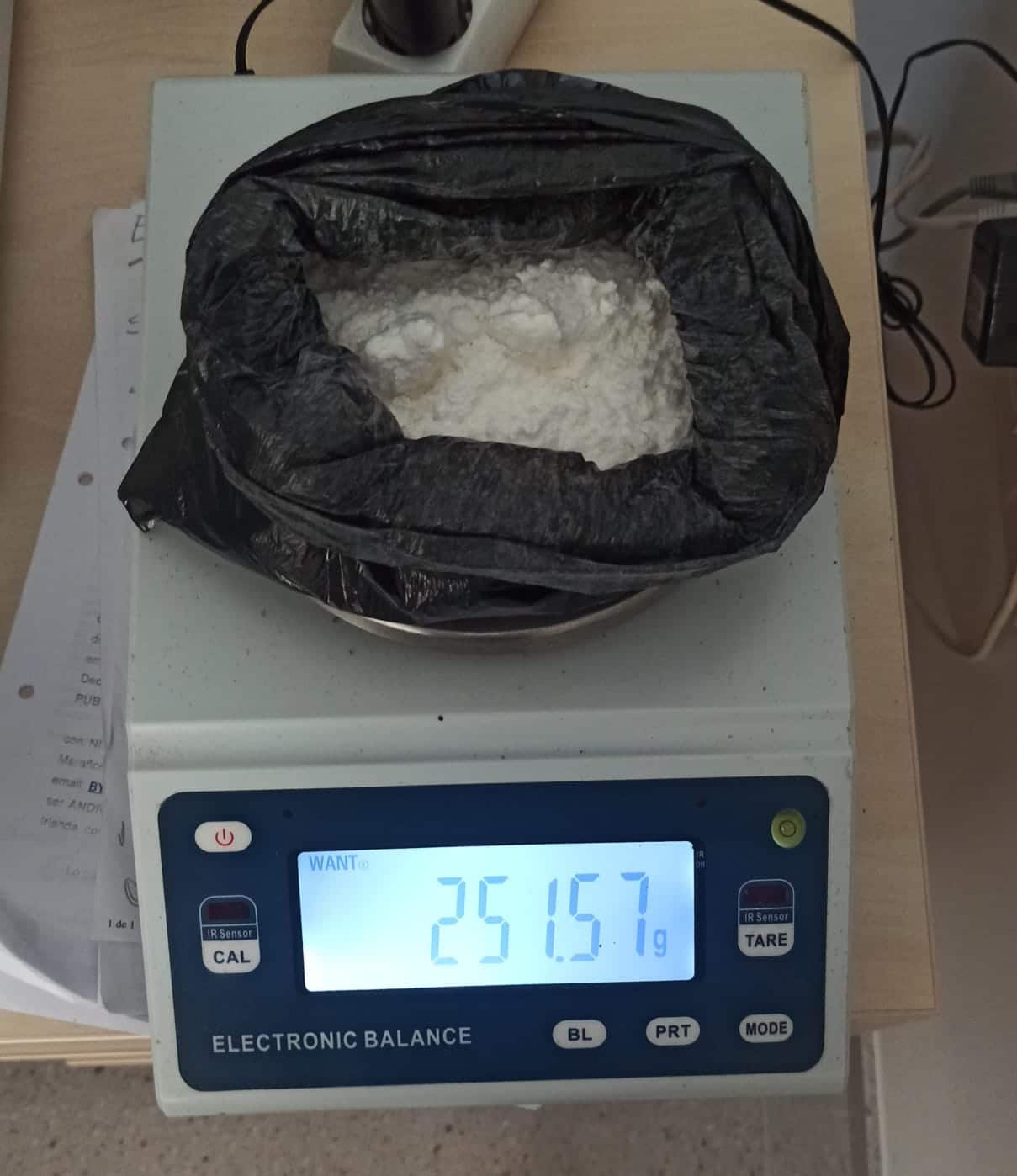 Al revisar el maletero, hallaron varias bolsas con sustancias blancas en polvo y en piedra, presuntamente cocaína. También encontraron material para el tráfico: una balanza de precisión, bolsitas de plástico y utensilios habituales en la distribución de drogas. En total, incautaron 400 gramos de la sustancia.