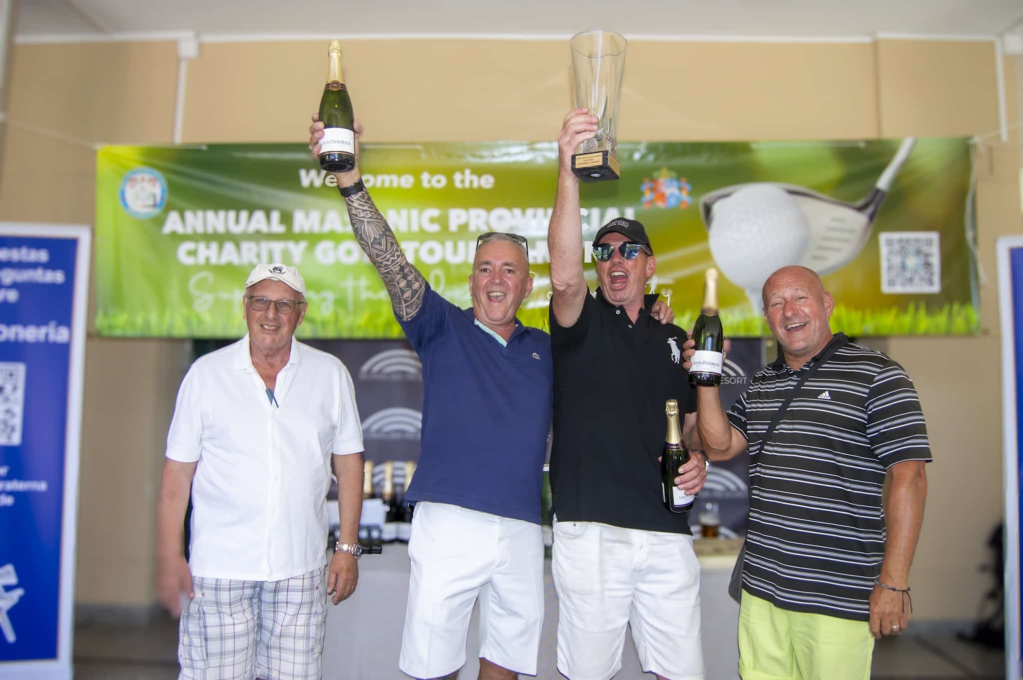 Además de las inscripciones, la recaudación incluyó un sorteo de “Golden Ticket” (patrocinado por Green Parrot Tourism, que aportó €1,480) y una rifa que sumó €750. El organizador, el V.·. H.·. Peter Johnson, destacó: *”Gracias a la generosidad de los jugadores, masones de toda la Provincia de Valencia, y nuestros patrocinadores—C&M Plumbing, Green Parrot Tourism, Golden Leaves International y Bonalba Golf—hemos recaudado más de €6,000 para obras benéficas masónicas”*.